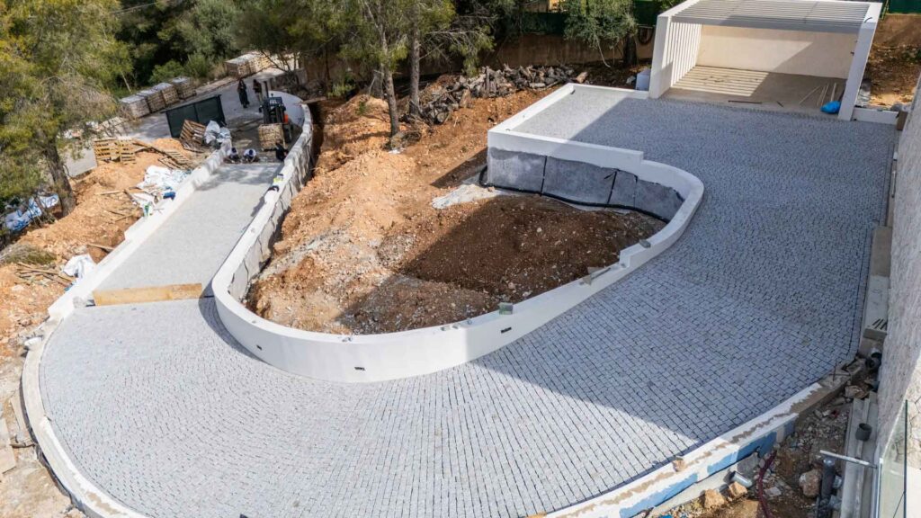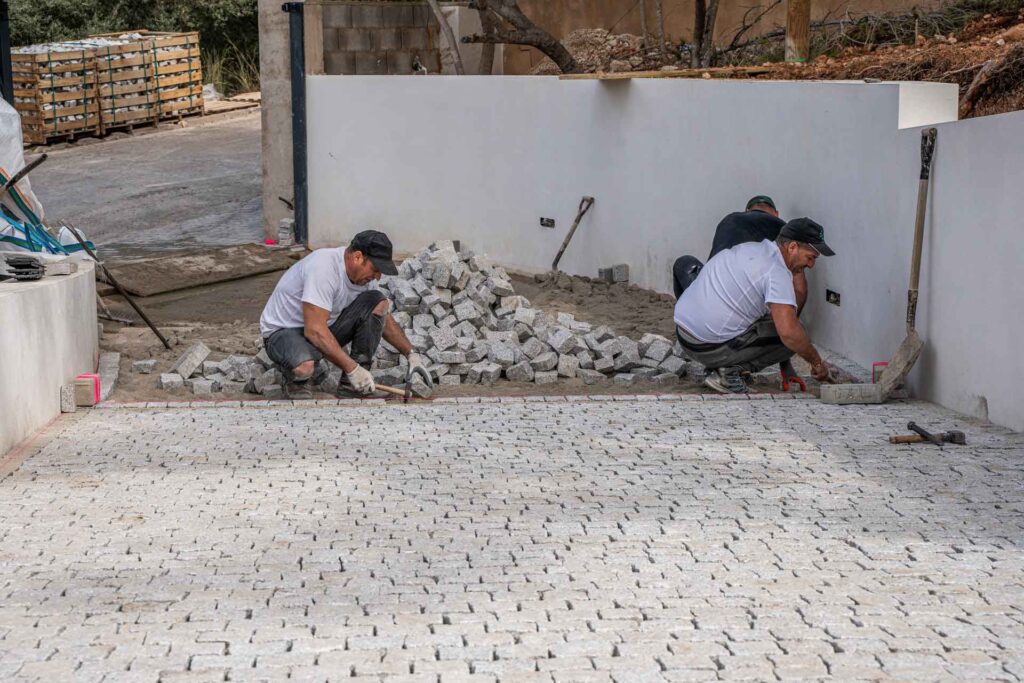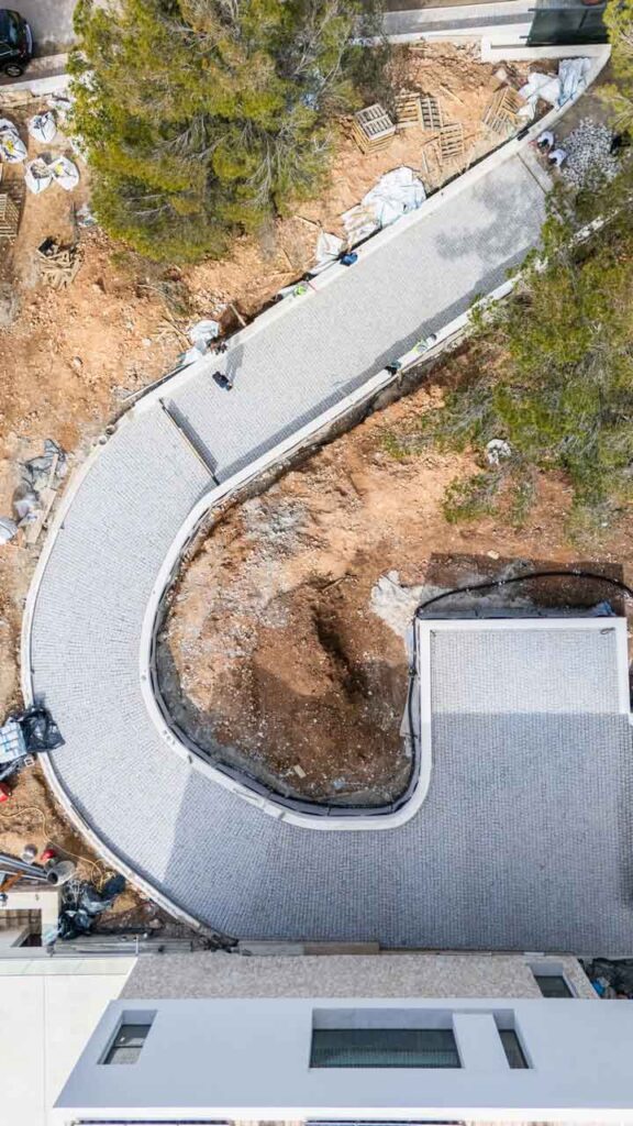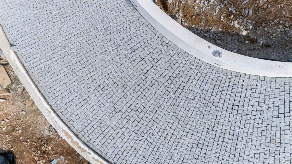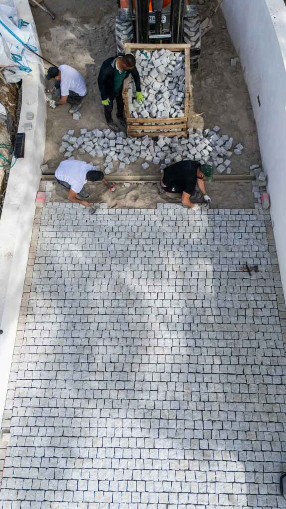 Light grey granite paving stones have been supplied and laid to pave this access ramp, using a highly resistant and durable material that is ideal for areas with vehicle and pedestrian traffic.