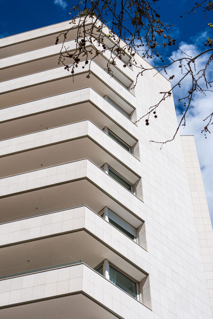 The façade of this building, located opposite the sea and close to the Porto Pi Shopping Centre in Palma de Mallorca, has been completely renovated. Crema Niza limestone was chosen for the cladding, an ideal material for façades due to its energy efficiency and sustainability.